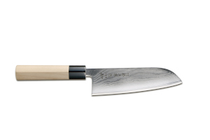 Ten robiący wrażenie damasceński wzór powstaje w skomplikowanym procesie skuwania kilkudziesięciu (37 lub 63) warstw stali o różnej zawartości węgla na rdzeniu o ekstremalnej twardości VG-10 HRC 60+/- , ta kombinacja zapewnia niespotykaną ostrość przy zachowaniu doskonałej elastyczności ostrza.