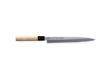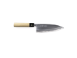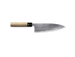 Tojiro Aogami noże są jednostronnie zaostrzone co zapobiega przywieraniu ciętego materiału do ostrza. Uchwyt w formie "KASZTANA" wykonany z japońskiego drewna HO wykończony skuwką z bawolego rogu.