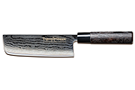 Ten robiący wrażenie damasceński wzór powstaje w skomplikowanym procesie skuwania 63 warstw stali o różnej zawartości węgla na rdzeniu o ekstremalnej twardości VG-10 HRC 60+/- , ta kombinacja zapewnia niespotykaną ostrość przy zachowaniu doskonałej elastyczności ostrza.